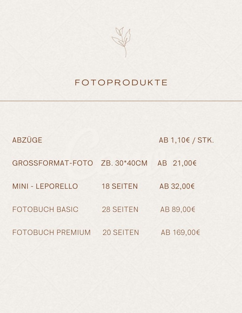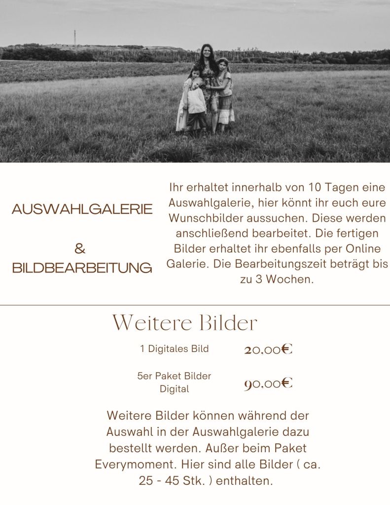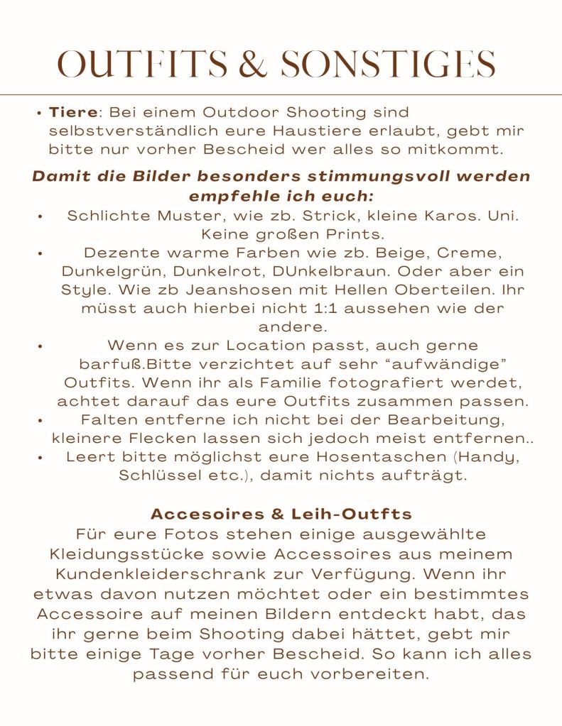Hier findest du meine Preisliste & alle wichtigen Infos zu einem Outdoor Shooting. Hierfür musst du einfach die nachfolgende Galerie durchblättern.